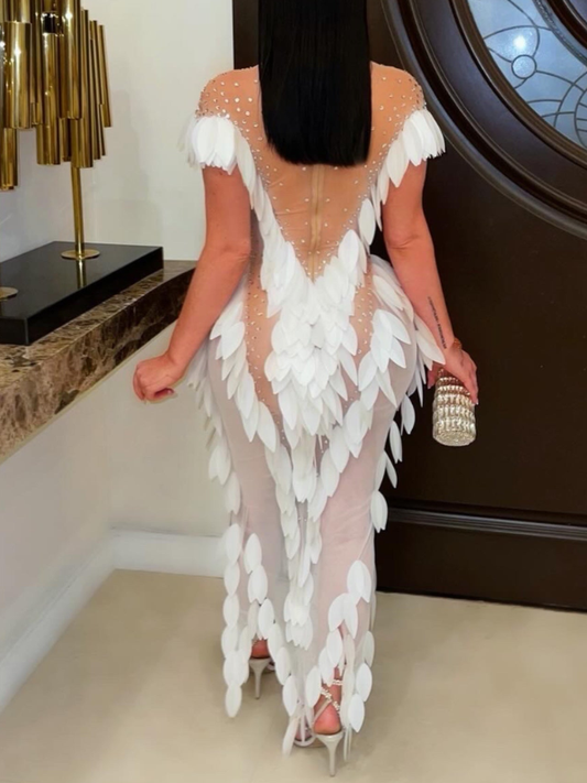 Studded Swan-Elegance Maxi Dress