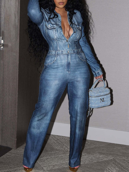Printed Button-Front Jumpsuit