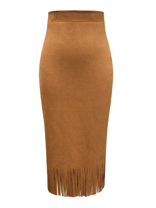 Beach Fringed Solid Color Bikini Swimsuit and Skirt