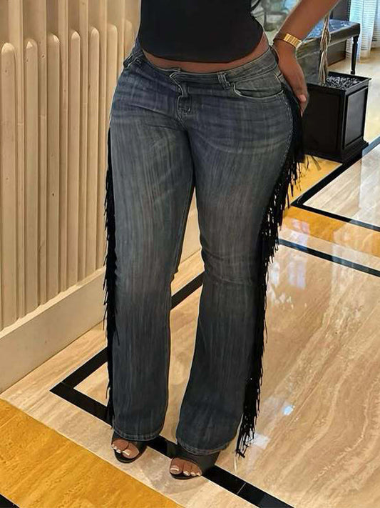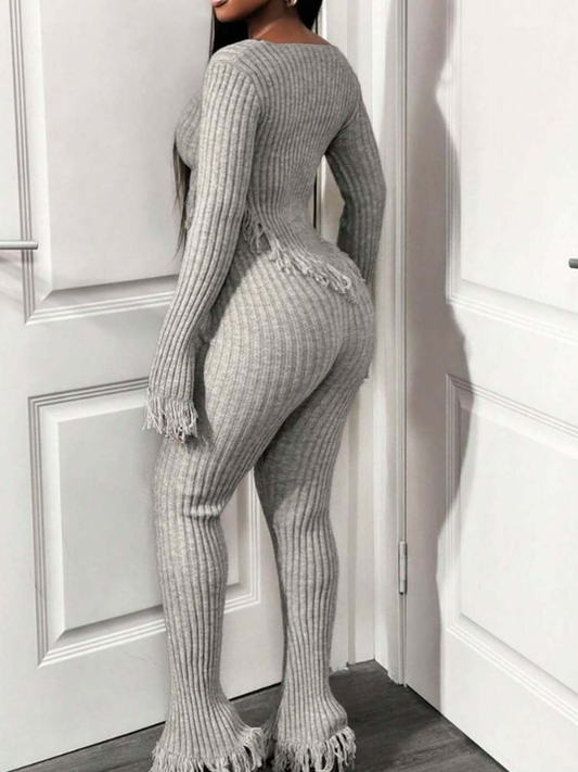 Solid Bodysuit & Fringe Pants Set--Clearance
