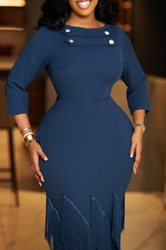 Sexy Vacation Solid Color Fringed Trim Hollow Out Deep V Neck Long Dresses