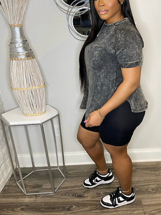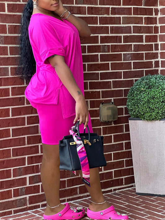 Printed Slit Tee & Biker Shorts Set--Clearance