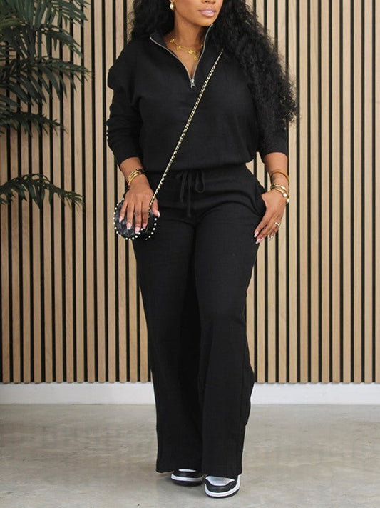 Cold-Shoulder Zip-Front Top & Jogger Pants Set--Clearance