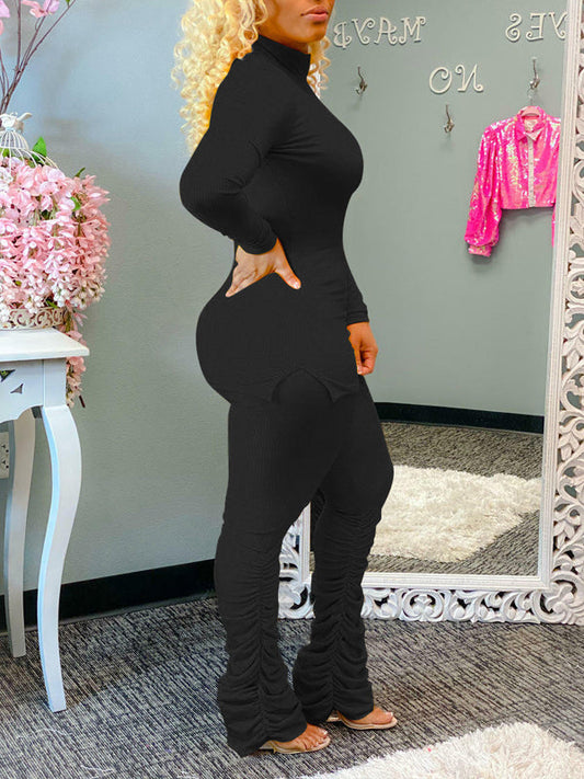 Morchique Ribbed Turtleneck Tee & Ruched Pants Set