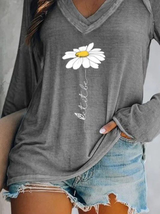 V Neck Printed Long Sleeve Casual T-shirt