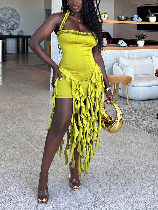 Ruffle Trim Halter Dress
