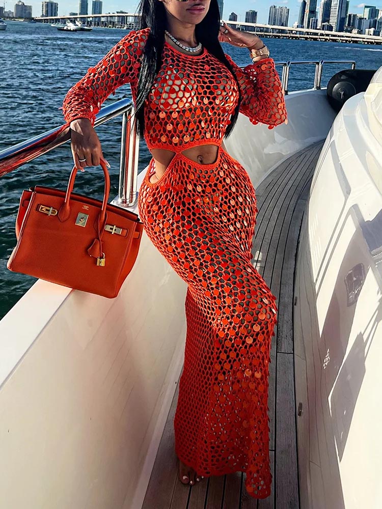 Sequin Crochet Dress Cover Up