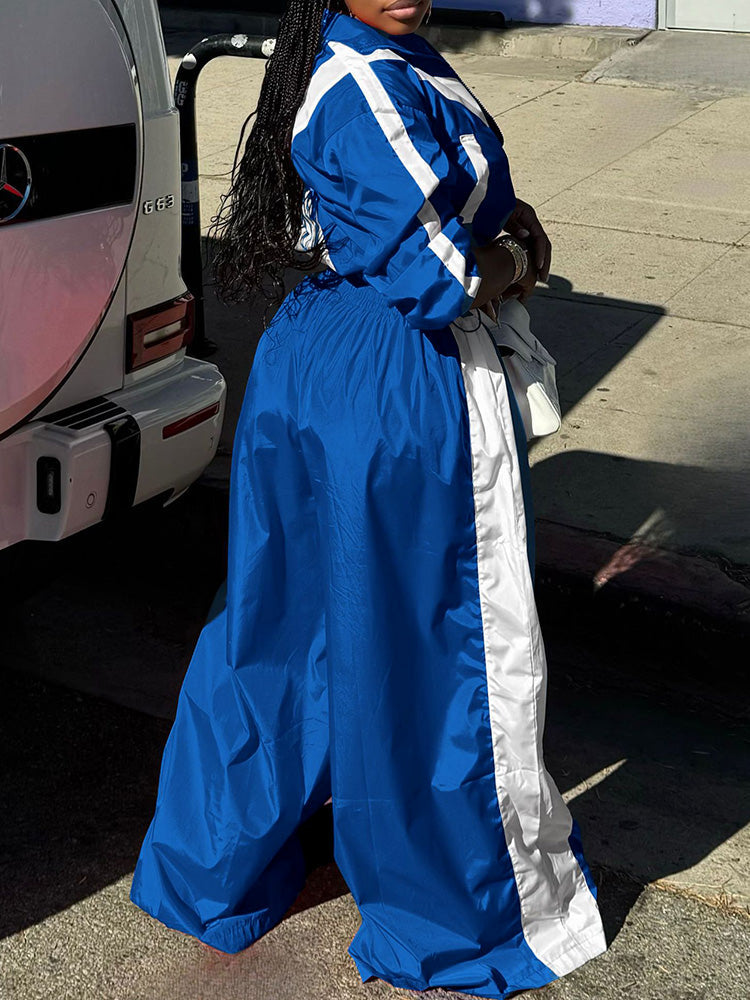 Sporty Crop Jacket & Wide Pants Set