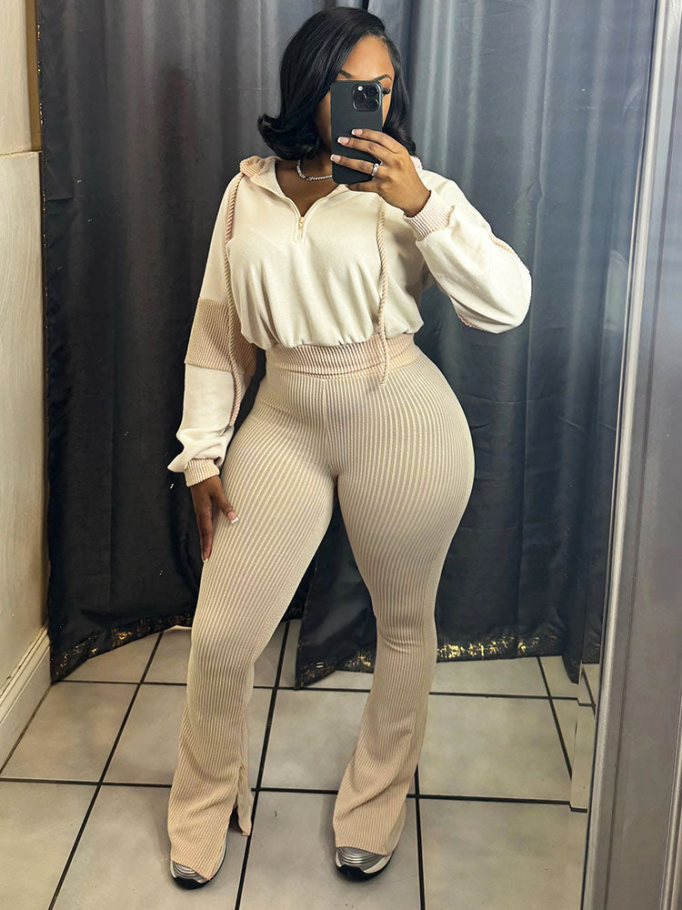Textured Hooded Top & Flared Pants Set