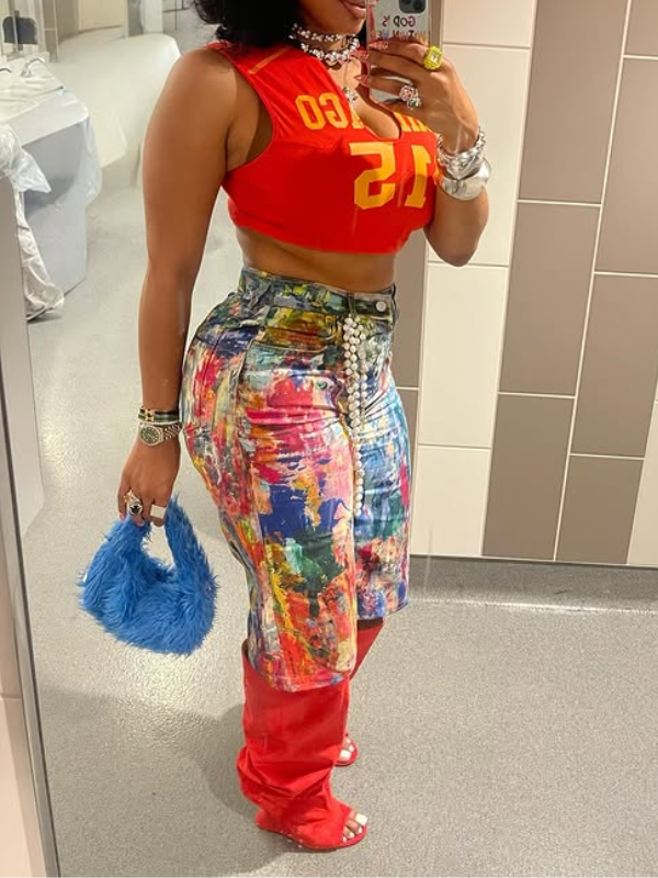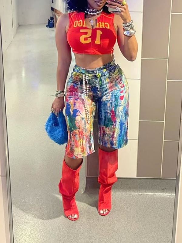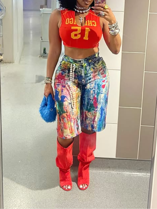 Increase quantity for Abstract Painted Straight Denim Shorts