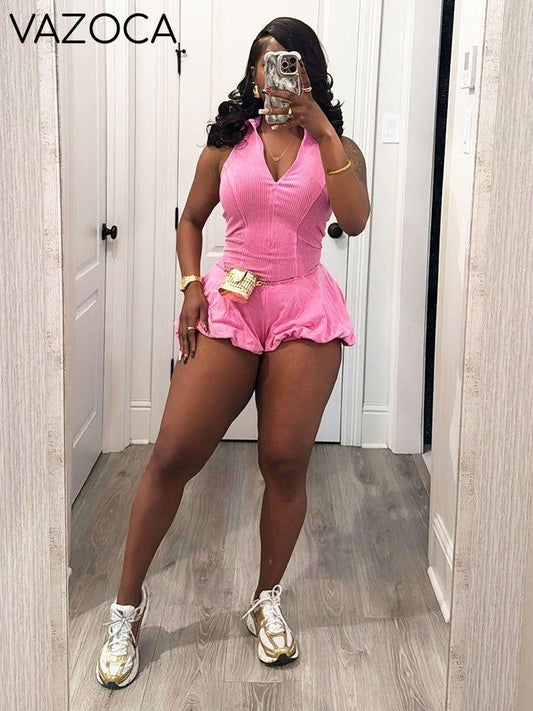 Ribbed Halter Romper