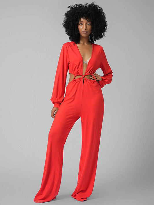 OfertaLace-Up Plunge Jumpsuit