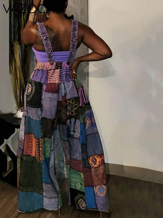 Casual Patchwork Loose Overalls