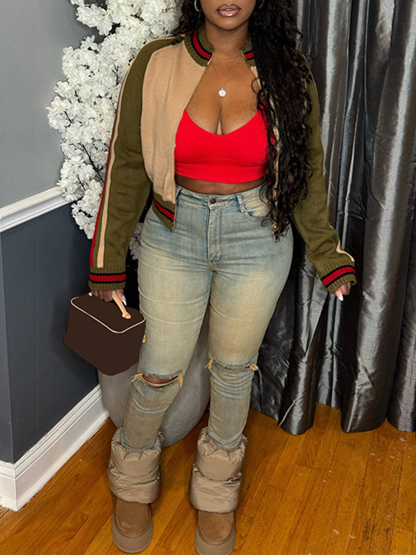 Colorblock Zip-Front Cardigan