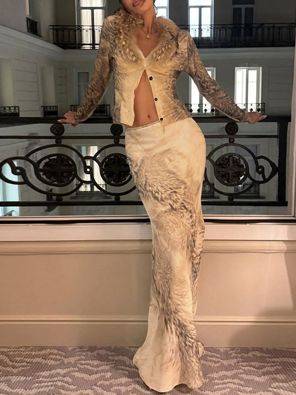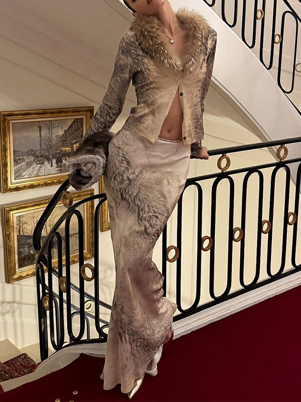 Faux-Fur Combo Shirt & Skirt Set