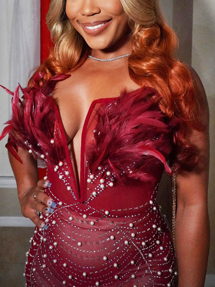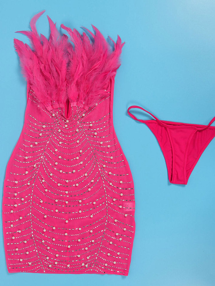 Feather Rhinestone Minidress