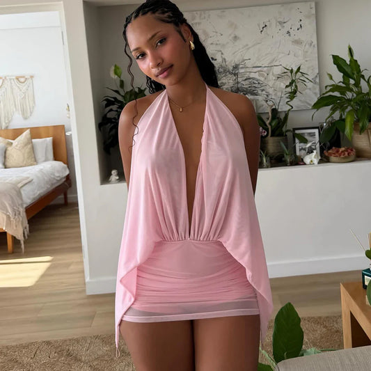 Halter Plunge Drape Mini Dress