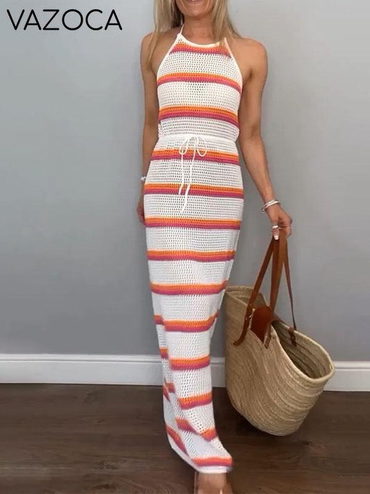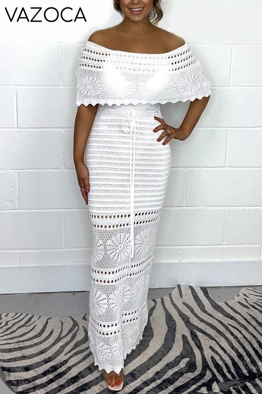 Robe longue en crochet tricotée de couleur unie