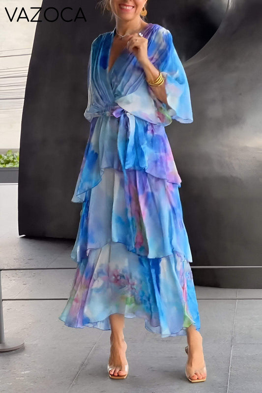 En venteRobe gâteau en mousseline à col en V