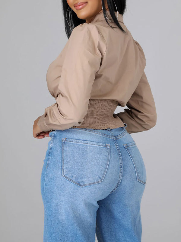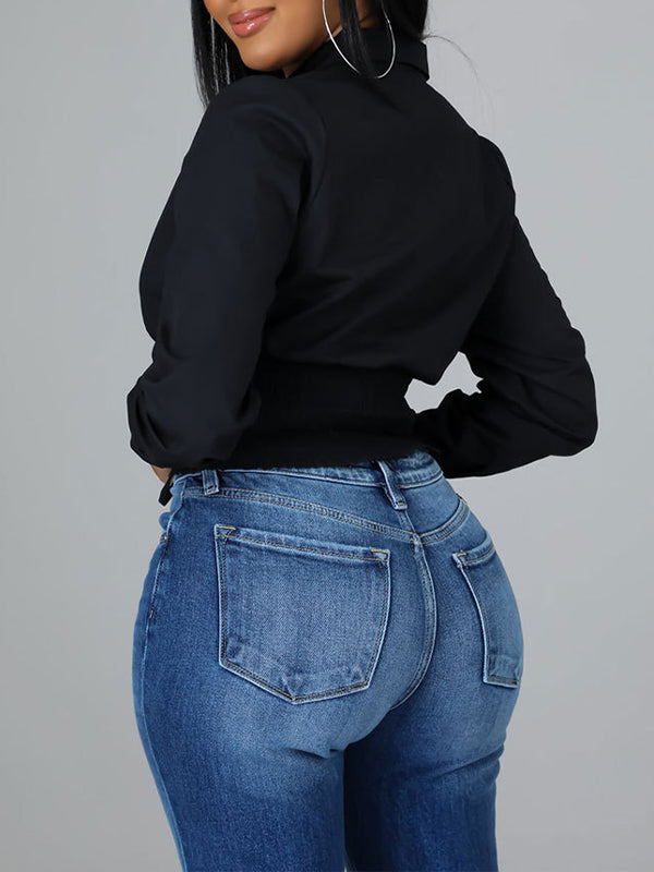 - Spread Collar, Long Sleeves, Button Front, Lace Up