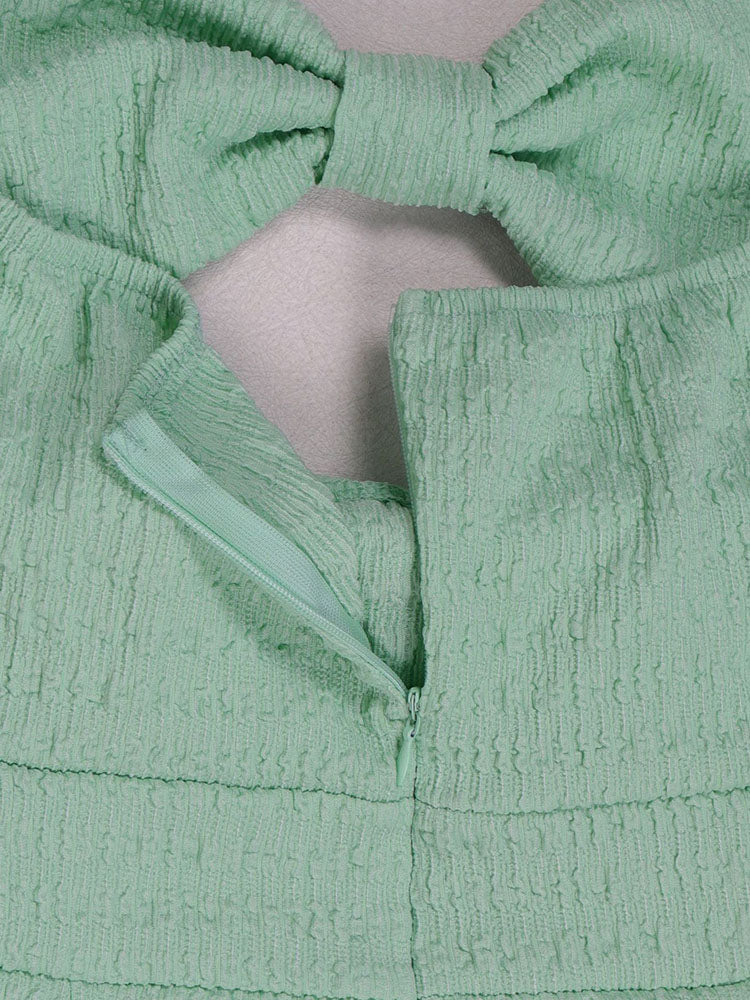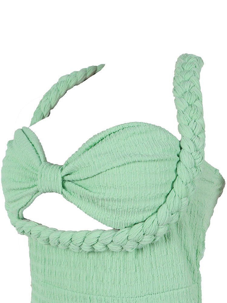 - Braided halter neckline