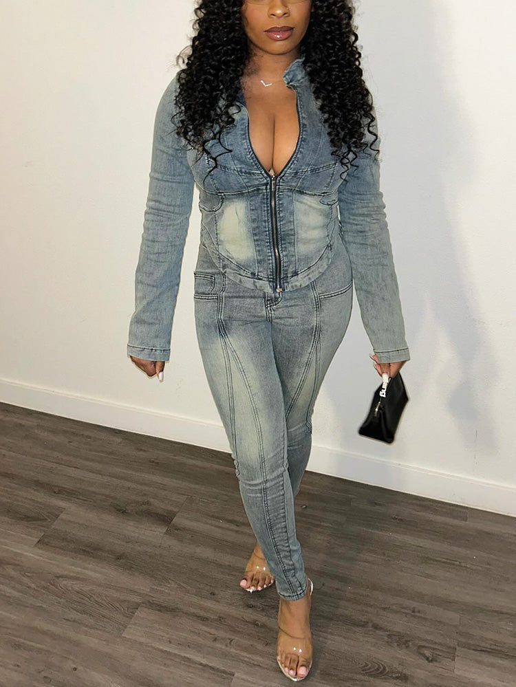Denim Cropped Jacket & Skinny Jeans Set