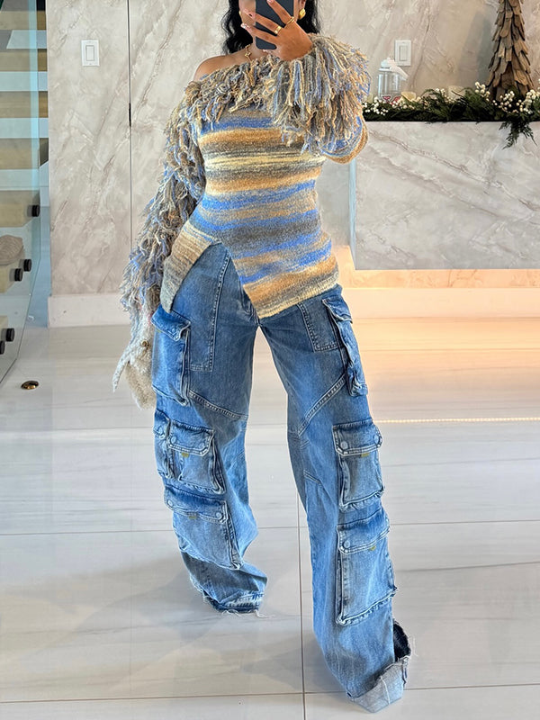 - Off Shoulder, Long Sleeves, Fringe Combo