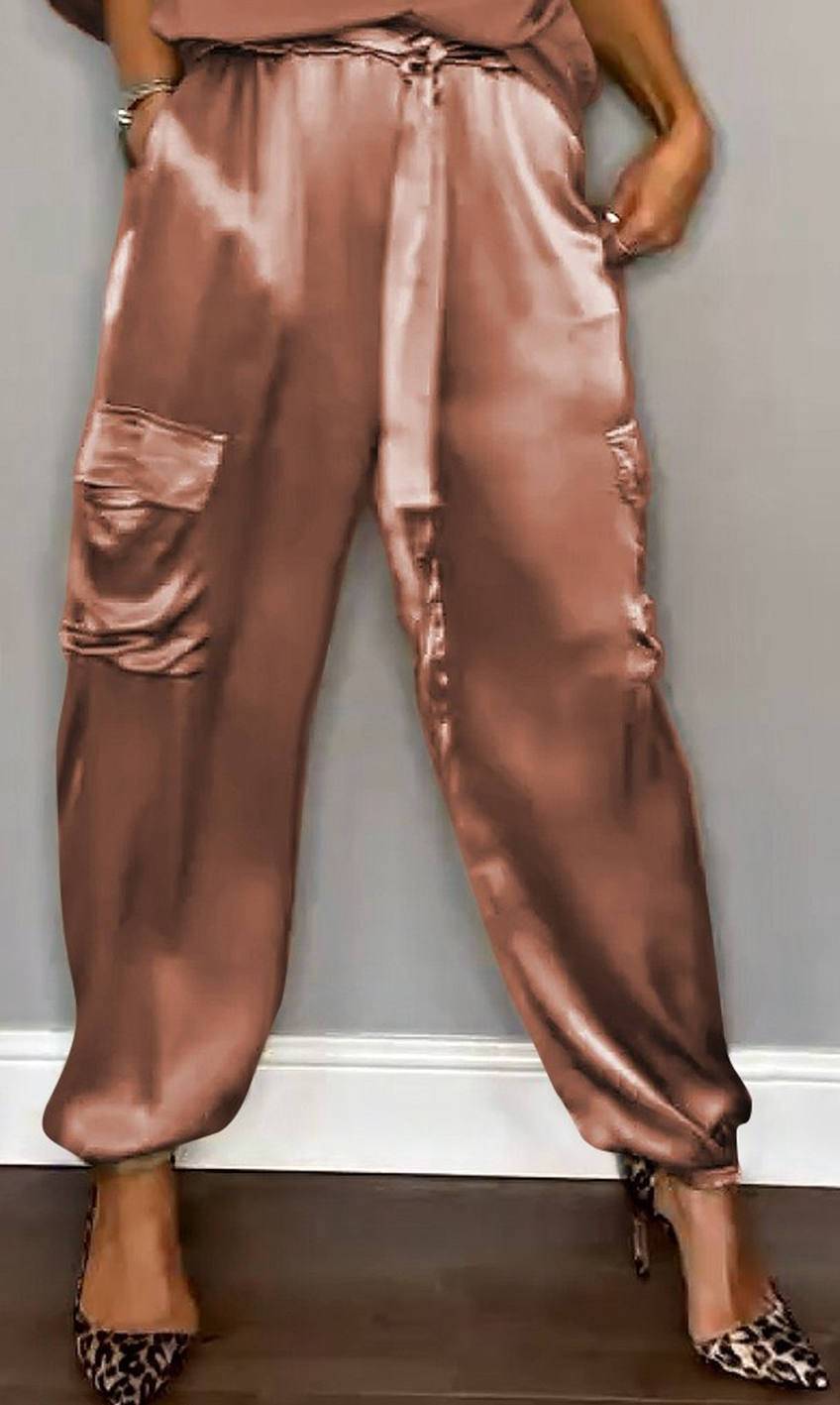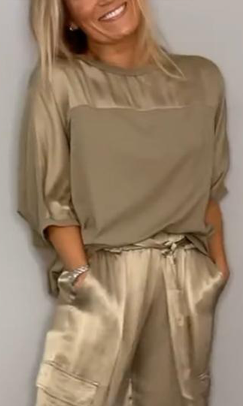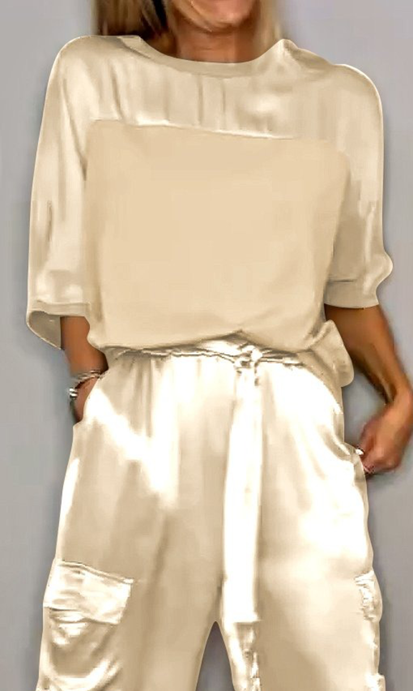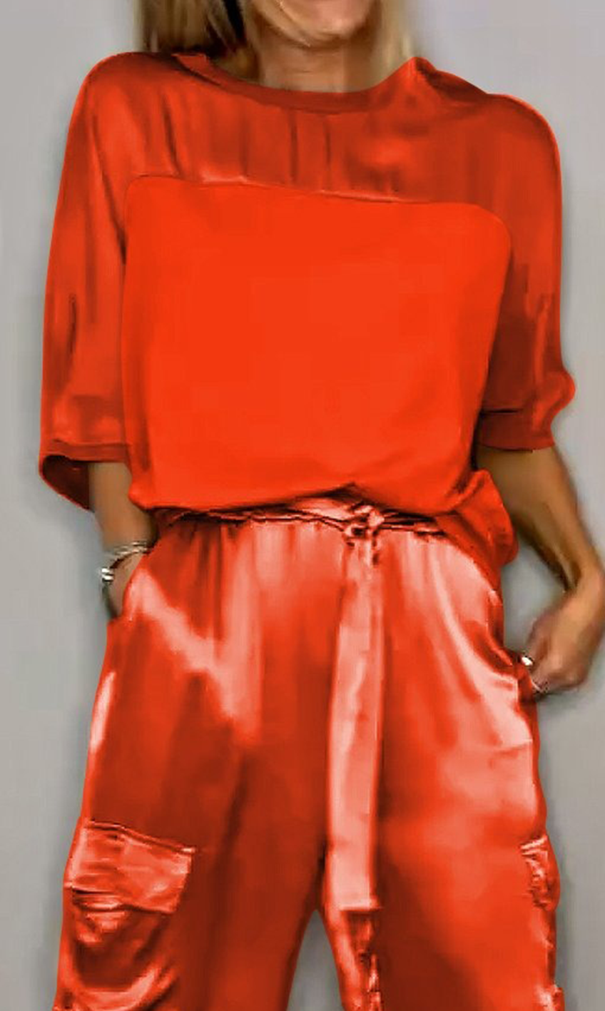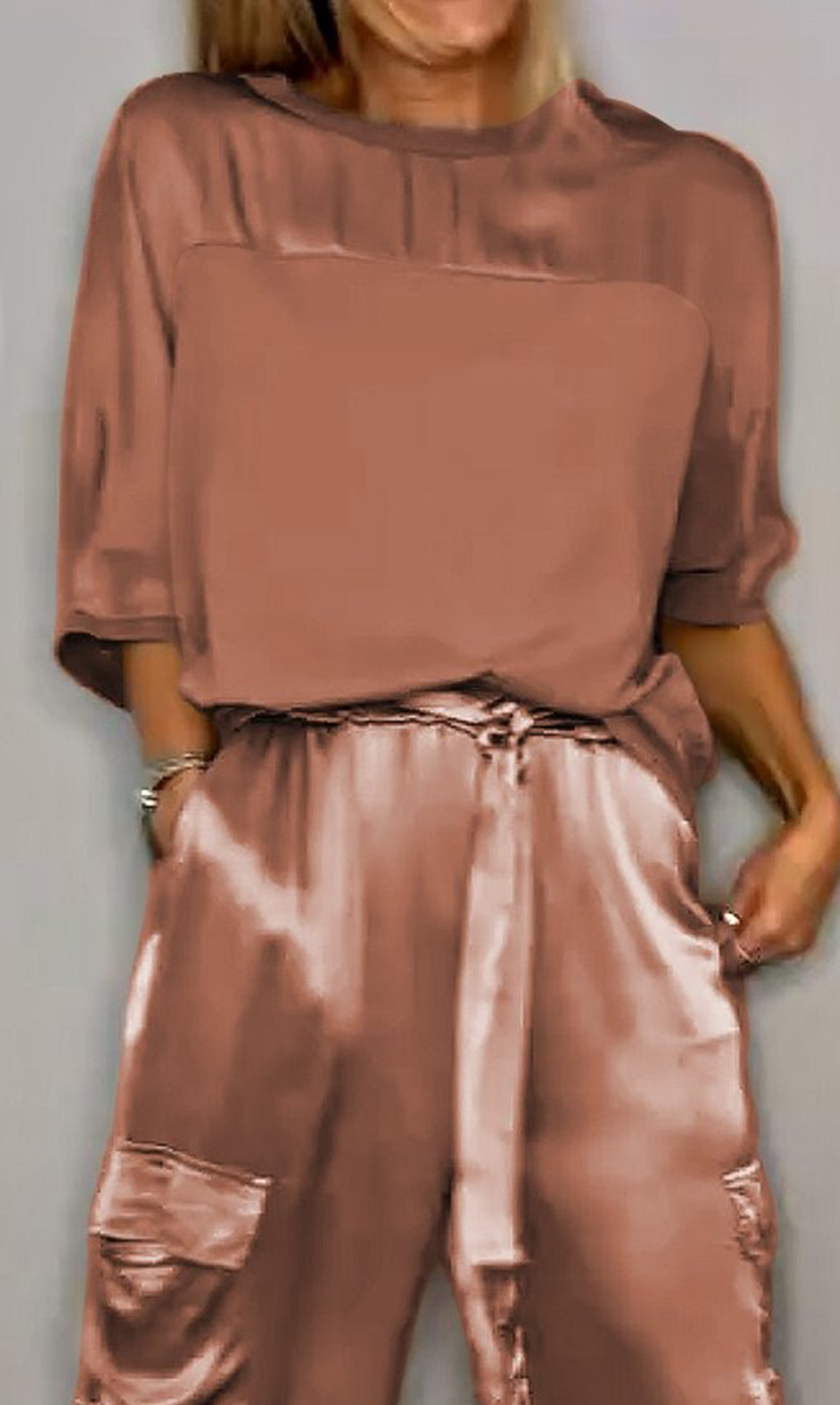 Women's Smooth Satin Half-sleeved Top and Pant purchased separately