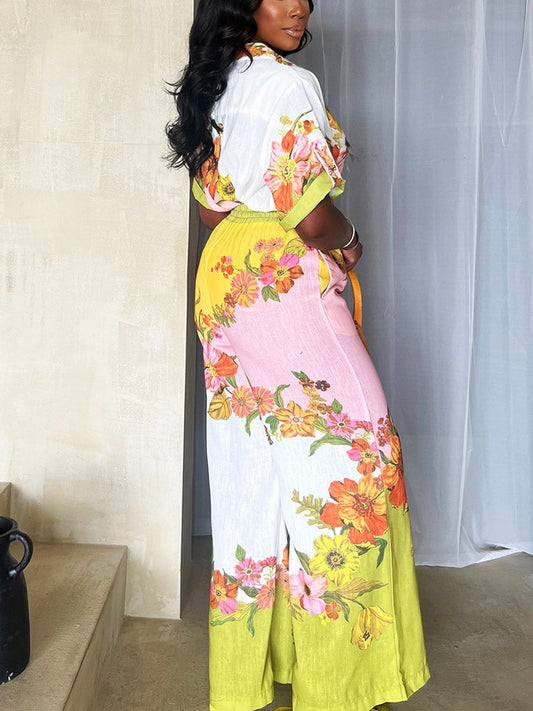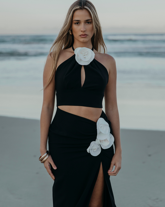 Vestido longo com fenda florida tridimensional com decote frente única para férias na praia