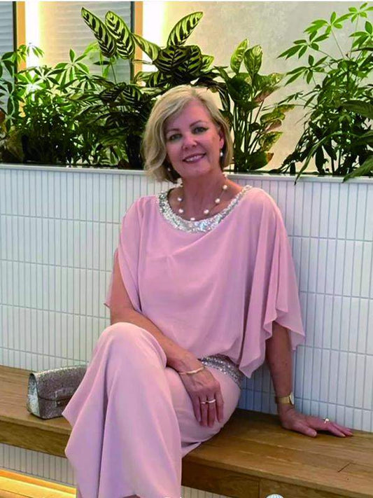 Blusa e calça feminina de cetim liso com meia manga adquiridas separadamente