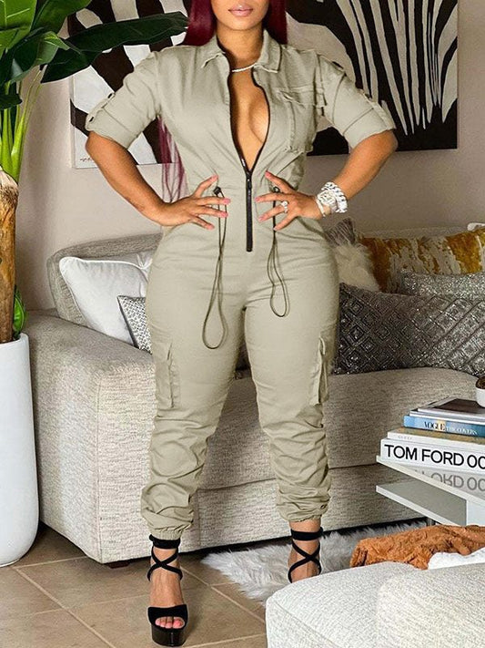 Zip-Front Cargo Jumpsuit