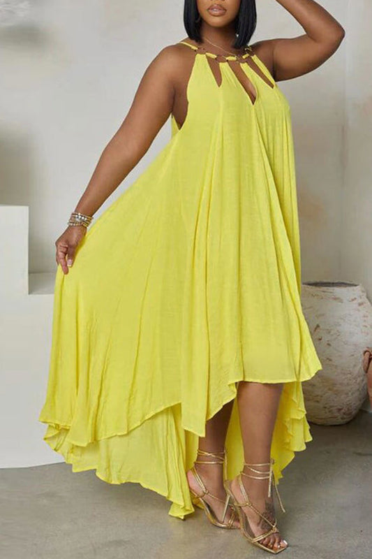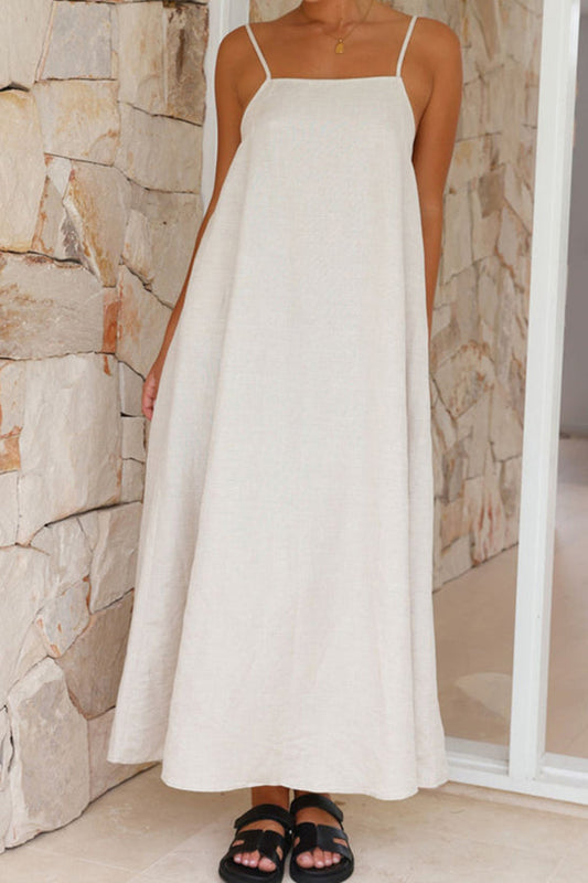 Vestido maxi casual com amarração nas costas e bolso inclinado