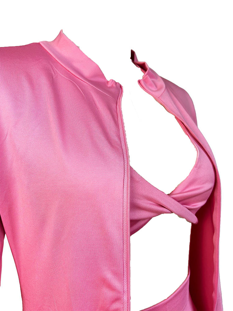- Cropped bralette, leggings, and crop jacket