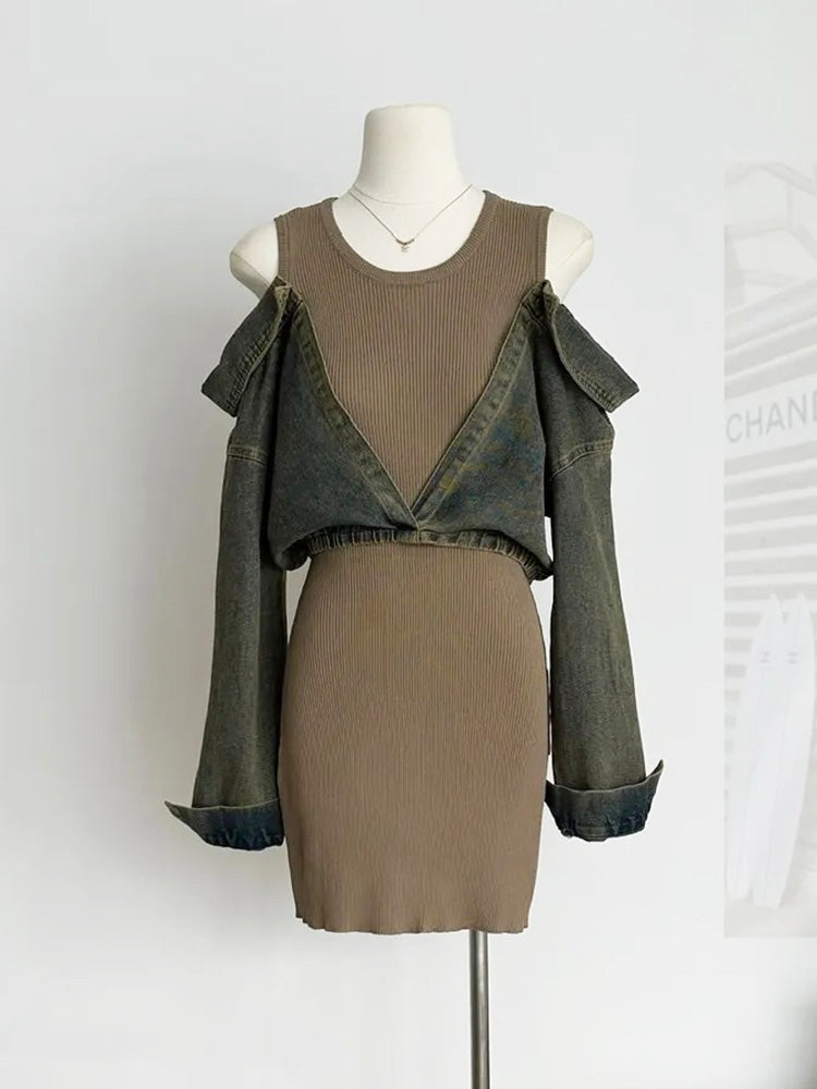- Denim & ribbed knit