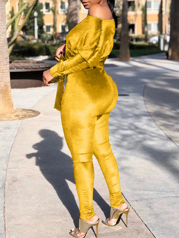 - Off Shoulder, Long Sleeve, Tied Belt