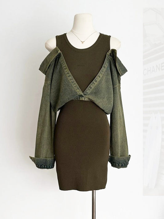 Denim Crop Jacket & Snap Cargo Jeans Set