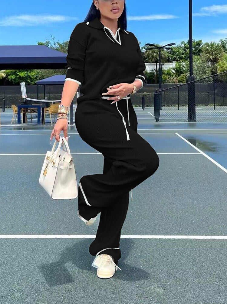 - Turn-down collar, wide leg